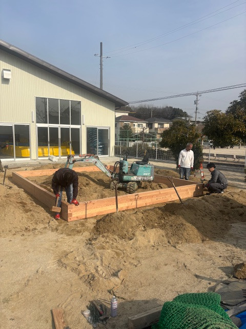 砂場設置完了しました。