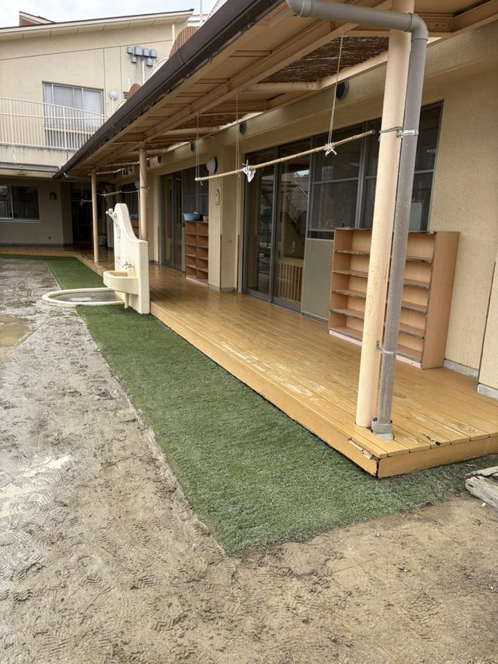 先日名古屋市守山区のなえしろ保育園にて、ハイブリットターフPG洗浄作業を行いました。 専用の高圧洗浄機で行ったところ、人工芝に入り込んだかなり大量の砂が排出されましたが、 キレイな人工芝となりました。